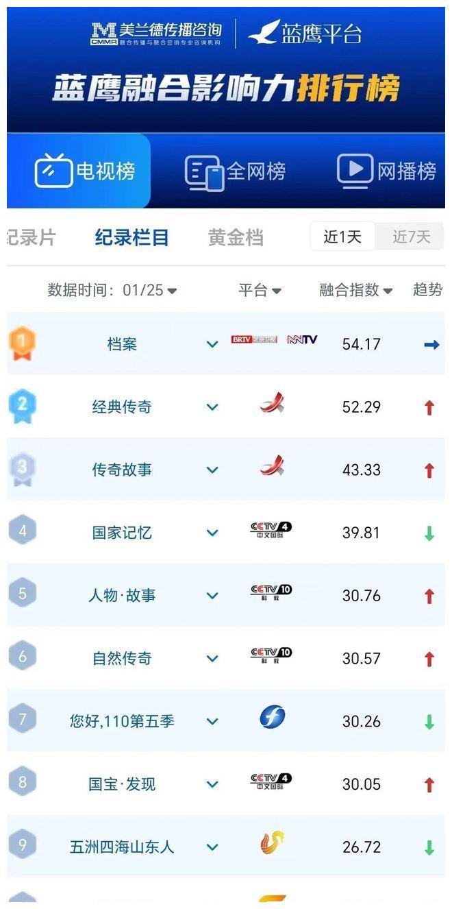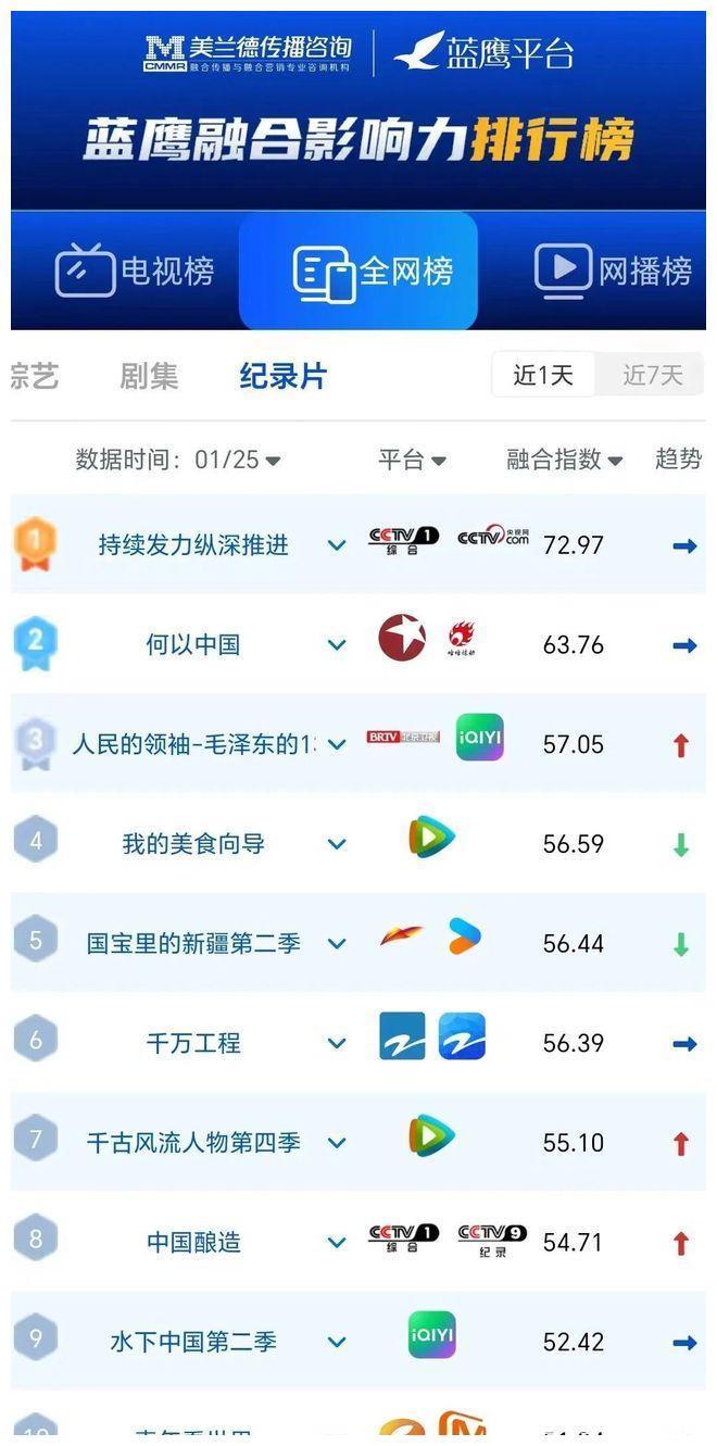 全网记录片会通传播指数(1月25日)