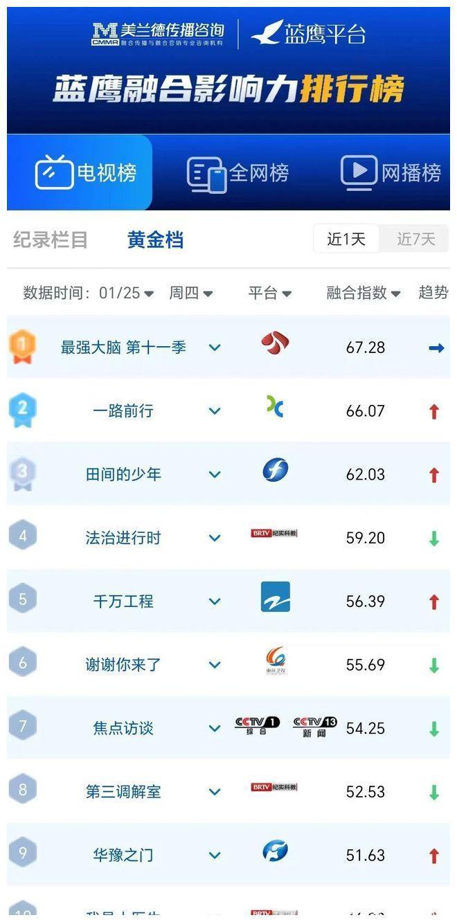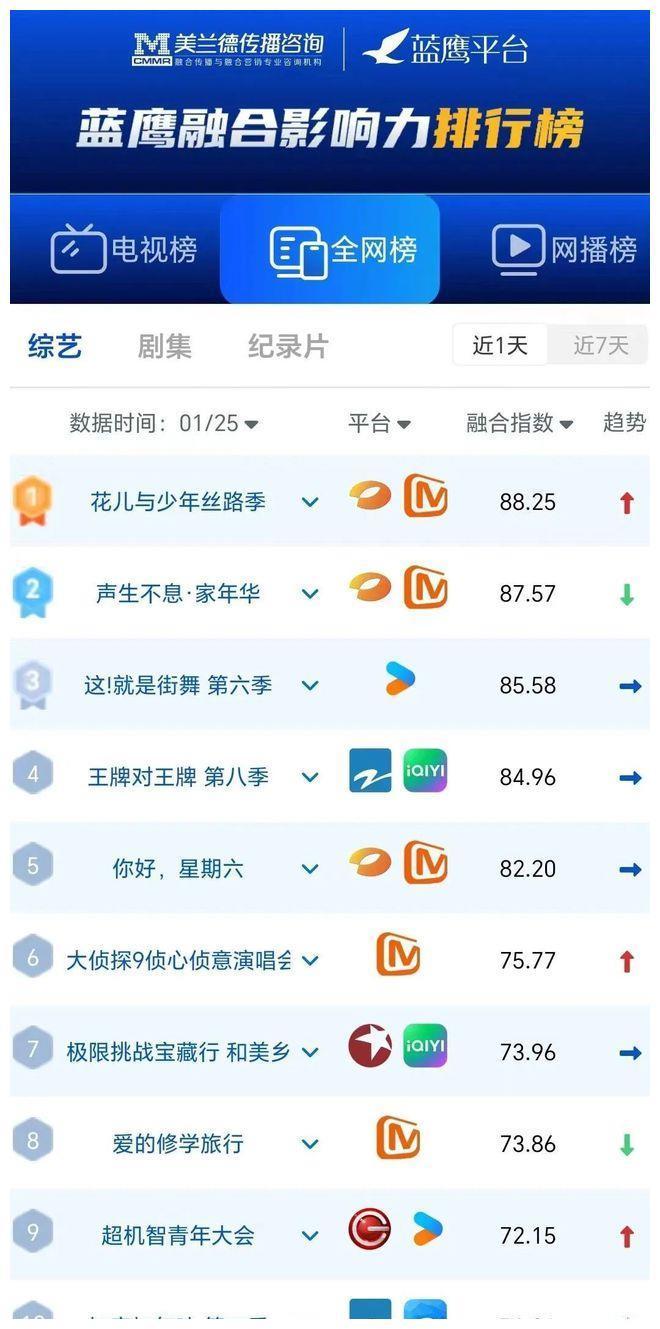 全网综艺会通传播指数(1月25日)