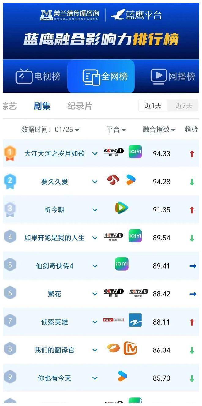 全网剧聚积通传播指数(1月25日)