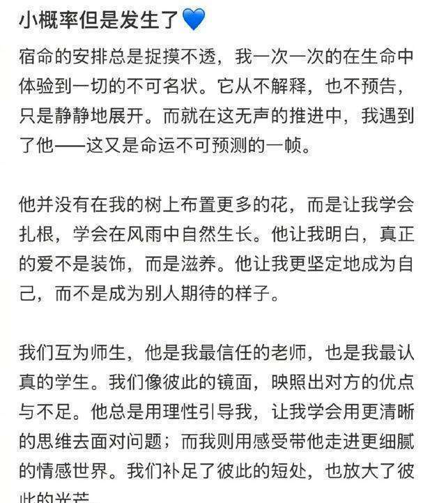 值得侥幸的是,在这一派争议声中,更多的网友选拔了祝颂。高以翔的姆妈点赞了她的婚帖,这无疑是对Bella的一种招供和饱读舞,仿佛是在告诉她,畴昔的已过程去,目前应该好好地去拥抱新的生涯。而高以翔的二哥也专诚奉上了祝颂,在他们眼中,Bella能够早已如同家东说念主一般的存在。
